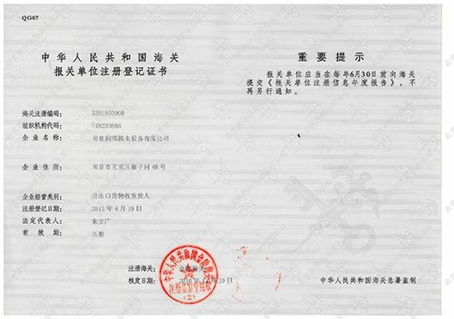 報(bào)關(guān)單位注冊(cè)等級(jí)證書