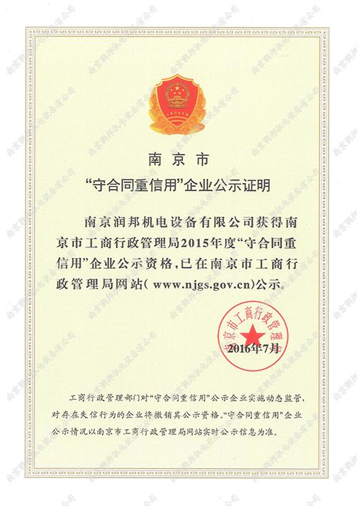 2015年市級(jí)守合同重信用企業(yè)